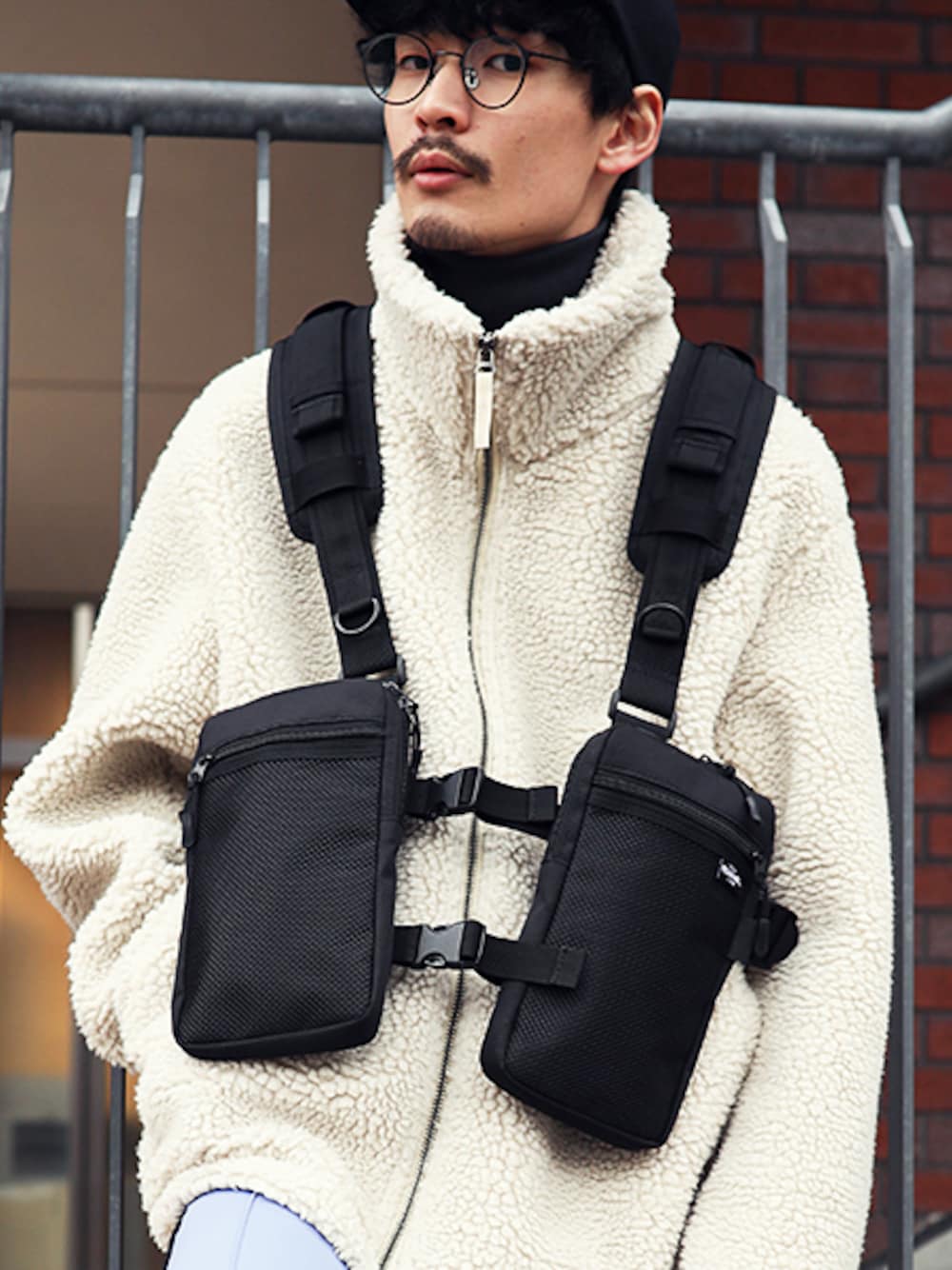★WEARISTAじーたーくん着用★ ナイロンの7倍の耐久性のCORDURA EcoMade Canvasを使用した ベスト型のバッグが登場! CORDURA EcoMade Canvasとは コーデュラ糸と再生PETのリサイクル糸を使った、 環境に優しい素材で、軽量で堅牢度に優れ、 耐引裂性・摩耗・擦り切れに強く、 高性能な撥水・防汚機能を持っています。 新しいタイプのベスト型バッグは モデルのようにフリースの上に重ねたり、 コートの中に入れたりと、 新しいファッションスタイルを提案します。