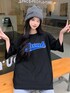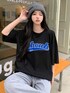 DEVICEのTシャツ/カットソー「韓国 古着風 ビッグシルエット カレッジロゴ ワッペン刺繍 半袖 Tシャツ」を使ったコーディネート