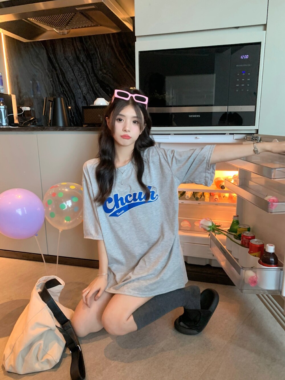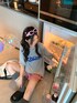 DEVICEのTシャツ/カットソー「韓国 古着風 ビッグシルエット カレッジロゴ ワッペン刺繍 半袖 Tシャツ」を使ったコーディネート