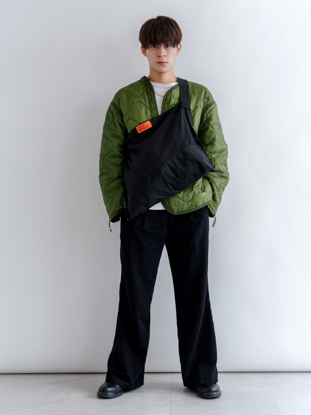 DEVICEのショルダーバッグ「DEVICE + 高密度ナイロン ショルダーバッグ」を使ったコーディネート