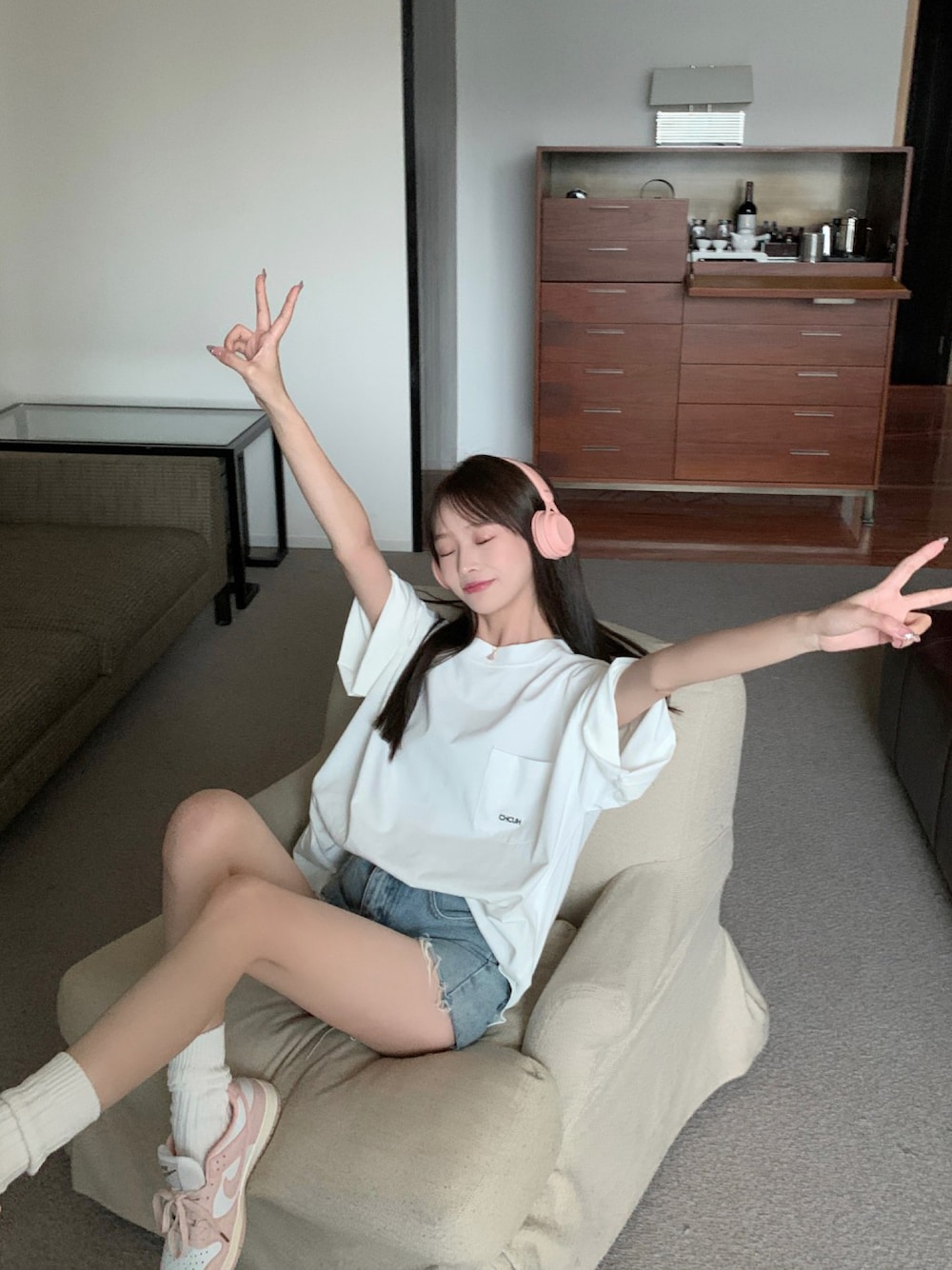 【2023SS オリジナル】オーバーサイズ ポケット刺繍 コットン 半袖 Tシャツ -デザイン ・ドロップショルダーでゆるっとが可愛い♡ ・胸元のポケットとオリジナルロゴがワンポイントになってオシャレ♪