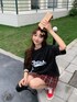 DEVICEのTシャツ/カットソー「ビッグシルエット ピグメント ジャンキープリント 韓国 ストリート y2k 古着風 オーバーサイズ ヴィンテージ ウォッシュ 半袖 Tシャツ」を使ったコーディネート