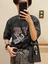 DEVICEのTシャツ/カットソー「ビッグシルエット ピグメント ジャンキープリント 韓国 ストリート y2k 古着風 オーバーサイズ ヴィンテージ ウォッシュ 半袖 Tシャツ」を使ったコーディネート