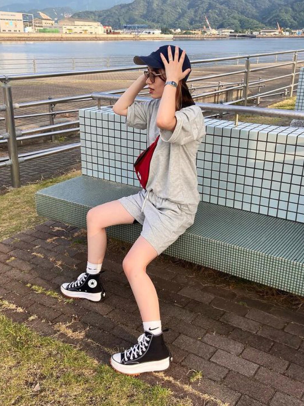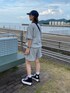 DEVICEのスウェット「ショートパンツ+トップス2点セットのルームウェア セットアップ ワンマイルウェア」を使ったコーディネート