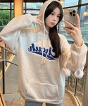 DEVICEのパーカー「韓国風ビッグシルエットフード付き カレッジロゴ フーディースウェット&パーカー」を使ったコーディネート