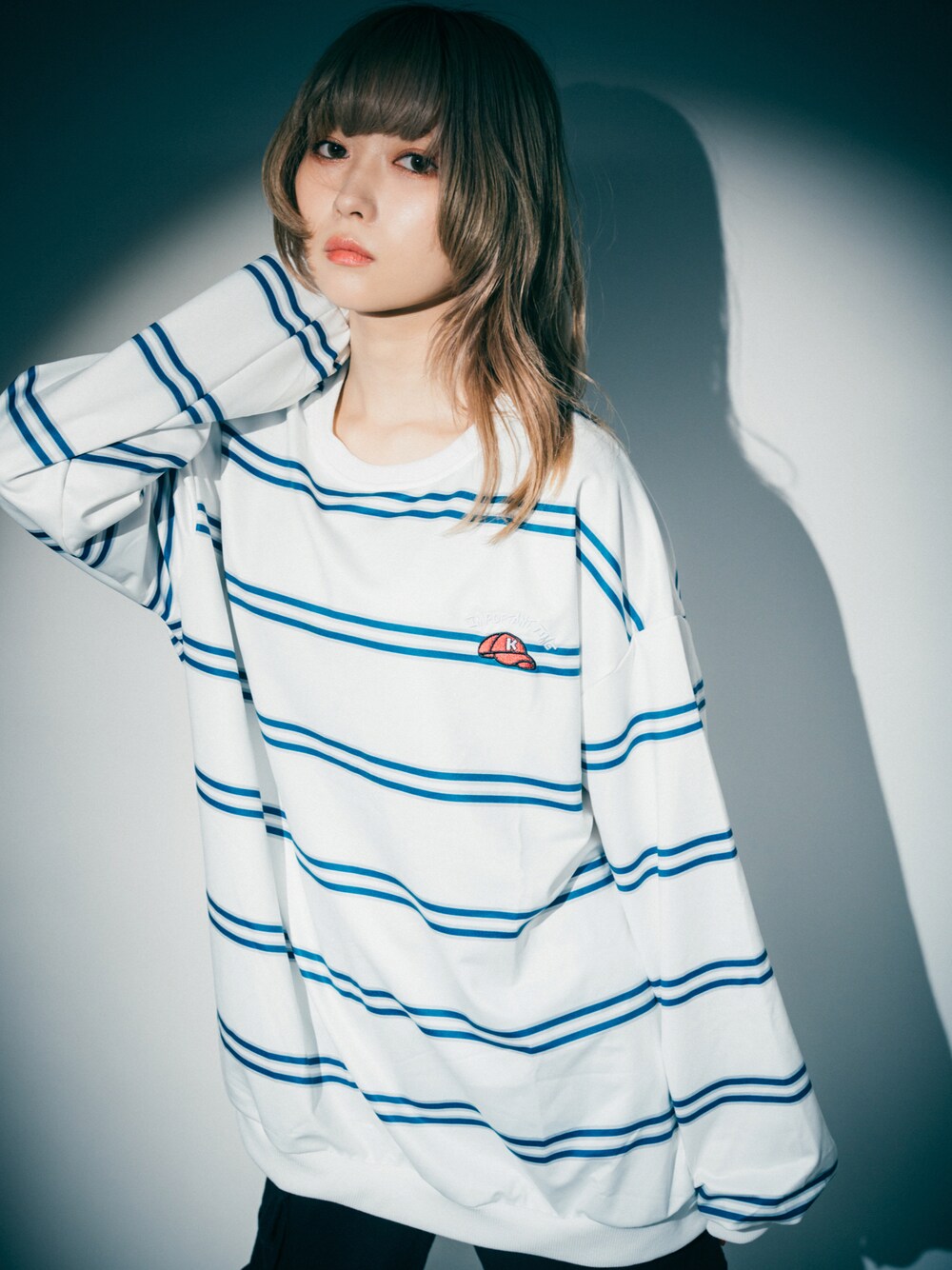 DEVICEのスウェット「ビッグシルエット キャップ ロゴ ボーダー スウェット ロンT トレーナー」を使ったコーディネート