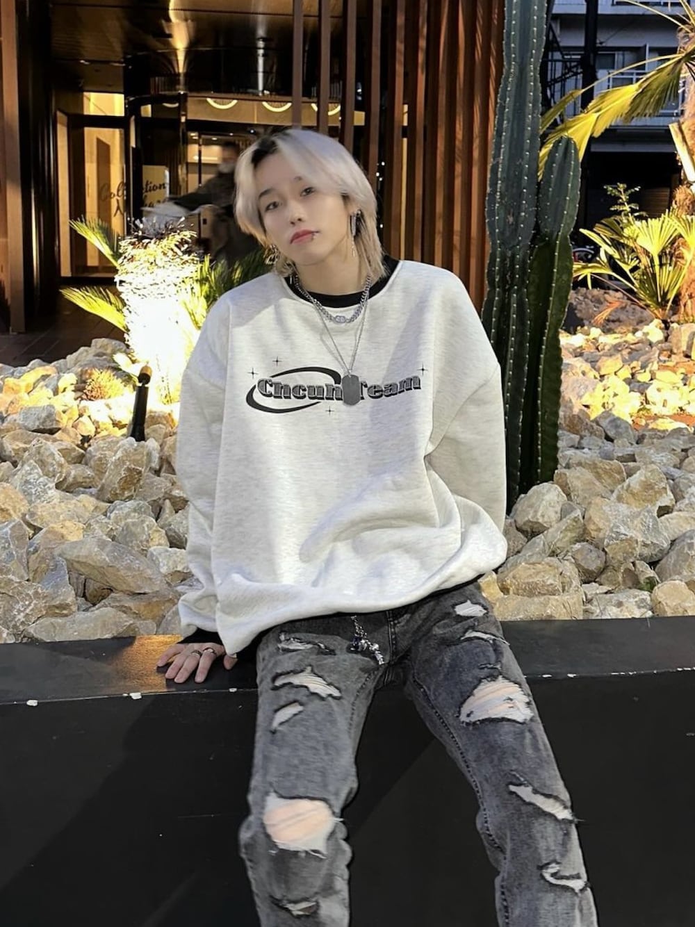 【NEW ITEM】オーバーサイズ アソート モチーフ スウェット トレーナー -デザイン ★ミックスグレー ・ロゴのグラフィックや配置にこだわった旬なデザインが、染み込みプリントされたオリジナルスウェット ・一押しポイント★リブに黒の配色をプラス★ メリハリが生まれこれ1枚でバランスがとりやすく、コーデ全体が引き締まった印象に! ・シンプルすぎずかつアイテムを選ばないので合わせやすさ満点◎ ・韓国ファッションはもちろん、カジュアル、ストリート、モード、Y2Kなど幅広いコーデにもおすすめ!