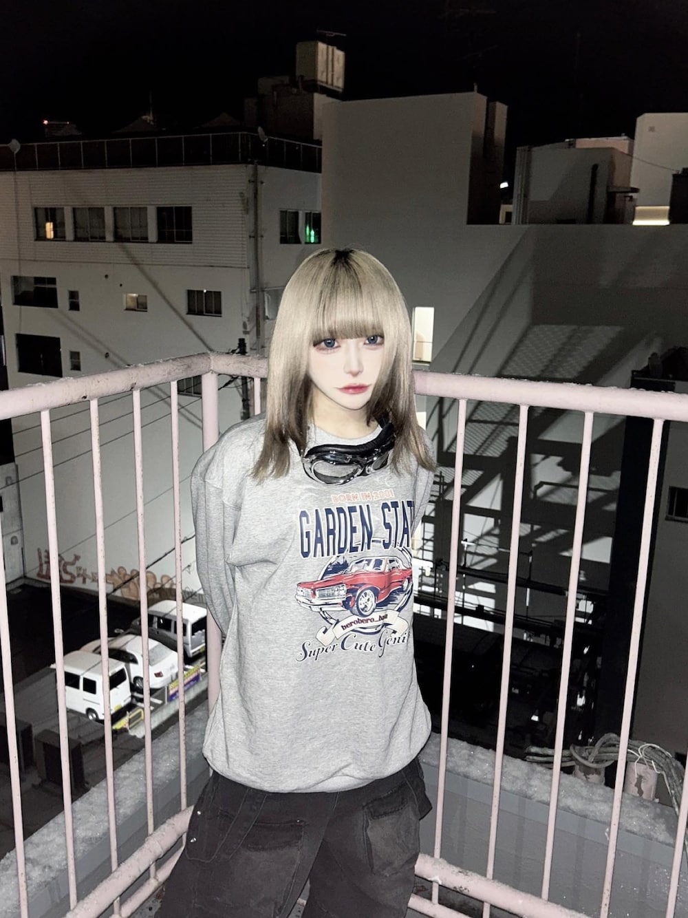 DEVICEのスウェット「【DEVICE×佐藤かれん】ルーズグラフィック CARプリント 裏毛 スウェット トレーナー」を使ったコーディネート