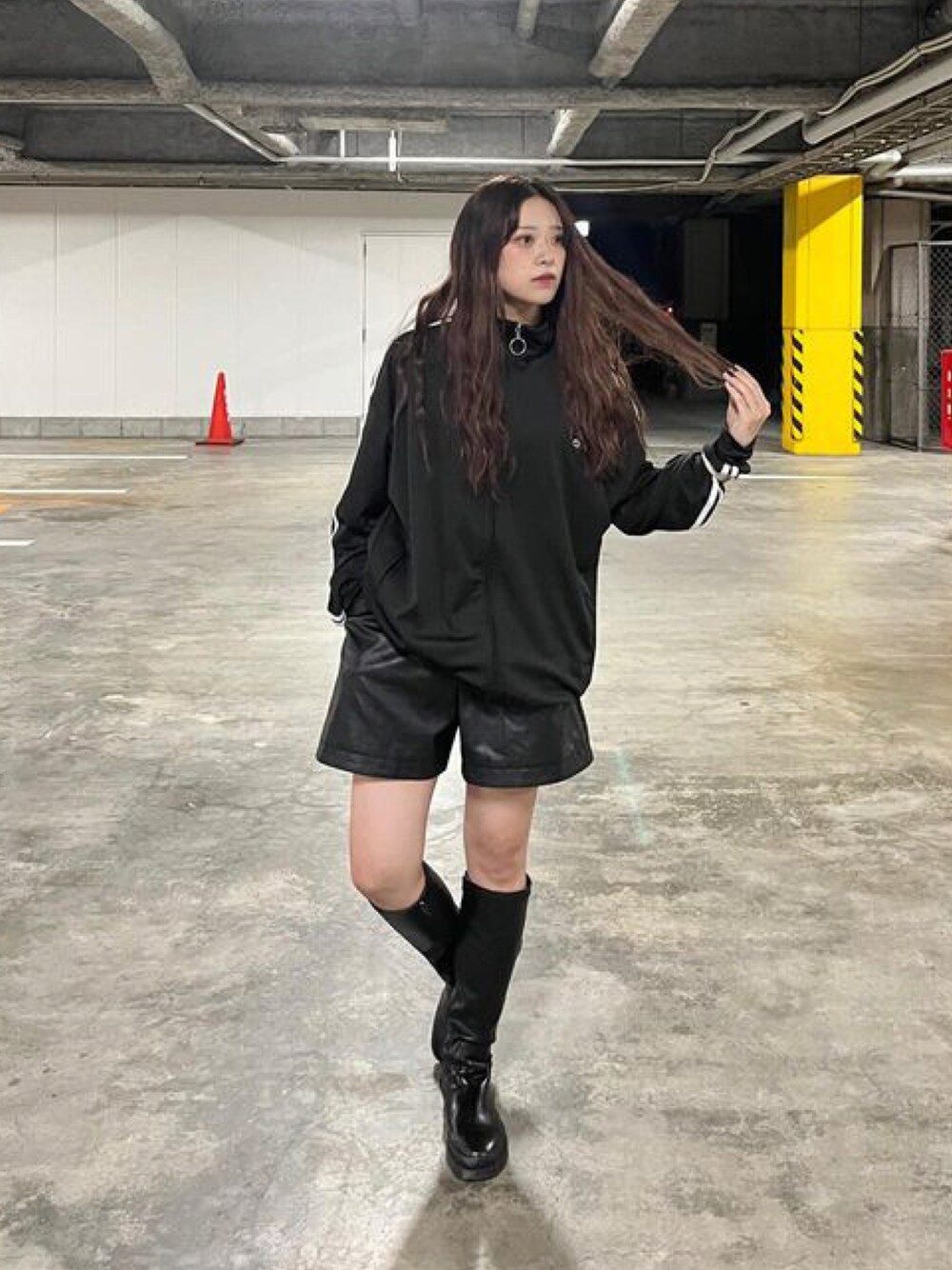 DEVICEのジャージ「ハイネック ダブルライン シンプル トラックジャケット ジャージ Y2K」を使ったコーディネート