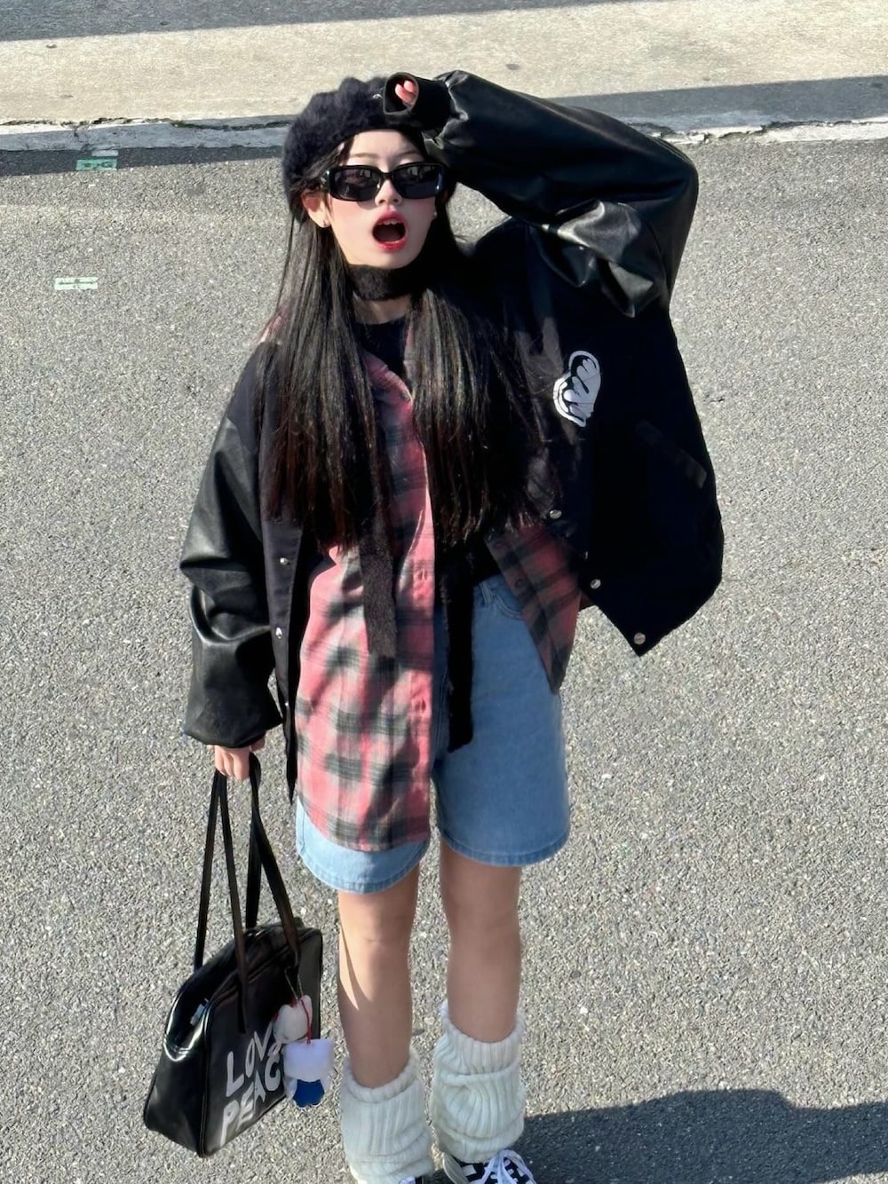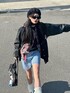 DEVICEのスタジャン「オーバーサイズ ハートロゴ ビッグシルエット ルーズ スタジャン アウター ジャケット」を使ったコーディネート