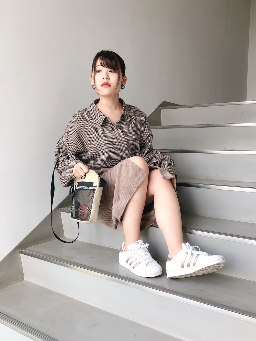 ・ 珍しく座り写! このチェックシャツに愛情を注いでおります 本当に可愛い… 初めてのブラウンコーデが成功したので 諸々挑戦したい♡ ・
