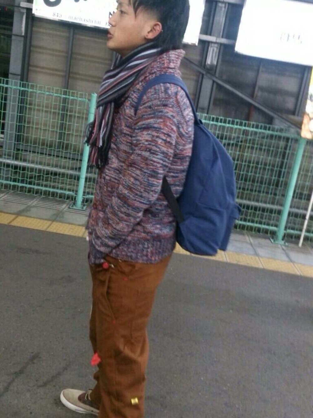 ブラウン系のカーディガン/ボレロを着用したメンズの春コーディネートの1枚目の写真