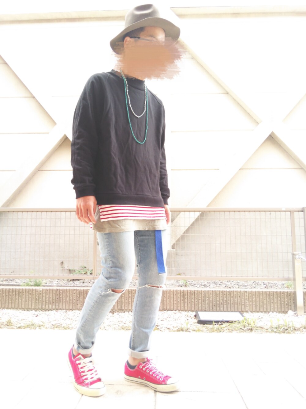 ハイードモコンニチワ~❗ 今日も曇り空の中見に来てくれてありがとー御座います~❗ 今日も元気にレイヤード。 今日はスウェット~。 の、下にロング丈でレイヤード。 パンツはダメージデニムー。 このデニムサイキンカイマシタ~。 足下は赤コンバースー。 色落ちデニムと赤コンバースって合うね。 スウェット×ダメデニ×スニーカーのカジュアルコーデ。 ボーシはツバ広ハット~。 このハットサイキンカイマシタ~。 今日のコーデはこんなんデシょー。 さ て と 、、、、 話が変わりますっ。 僕の友達で、僕がwearやってるの知ってるヤツがいるんですよ。 先日遊んだんですけど、待ち合わせ場所に向かってる時にその友達から突然ラインが来たんですよ。 見ると、 「今日はそのカッコねー❗了解ー❗」 って。 また次の時に遊んだんですけど、当日向かってる時にまたライン来たんですよ。 「今日はそんな感じねー❗了解ー❗」 って。 僕は友達がどんなカッコで来るか知らないんすよ。 なんか会う前から服装バレるって……。 なんかヤナ感じ……。 オシマイ👕 いつもイイネお気に入りフォローありがとー御座います❗ ソレジャマター❗ 気温19℃