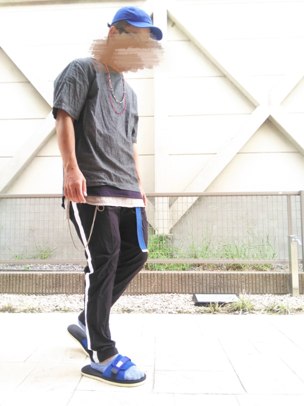 ハイドモーこんにちーわ❗ 今日も、もう夏も終わりだってーのにサンダルを2足も買っちまった中見に来てくれてありがとー御座います❗ いつ履くの……❓ 今でしょ❗ てことで今日履きました。 ハイ今日も元気にレイヤード❗ トップスはプルオーバー❗ Leeの。 インナーにロング丈ー❗ パンツは、ラインパーンツ。 足下は………。 サンダル………。 ボーシはキャップー。 所々に青入れてみますた。 秋のコーデのタグつけたけど、ガッツリ半袖にサンダルなんですけど…。 まあまだ初秋ですしね。 僕の中では、ハーフパンツがフルレングスになったら秋のコーデってことで。 今日のコーデはこんなんでしょー❗ さ て と 、 話が変わりますっ。 先日会社の帰りに歩いてましたら、前からおじいちゃんが歩いてくるのが見えたんすよ。 そのおじいちゃん、トップスがオープンカラーシャツにスラックスをタックインしてたんすよ。 今流行りの。 僕は、おー、おじいちゃんオシャレじゃんなんて思って、だんだん近づいてきたんすよ。 すぐ近くになって、タックインしてる腰の辺りみたら、シャツと、スラックスの間になんか見えたんですよ。 トランクスでした……。チェックの。 おじいちゃん……。シャツをスラックスじゃなくて、トランクスに入れてた…。 直接かよ……❗ オシマイ。 イイネ、お気に入り、フォローありがとー御座います❗ ソレジャマター❗ 気温27℃