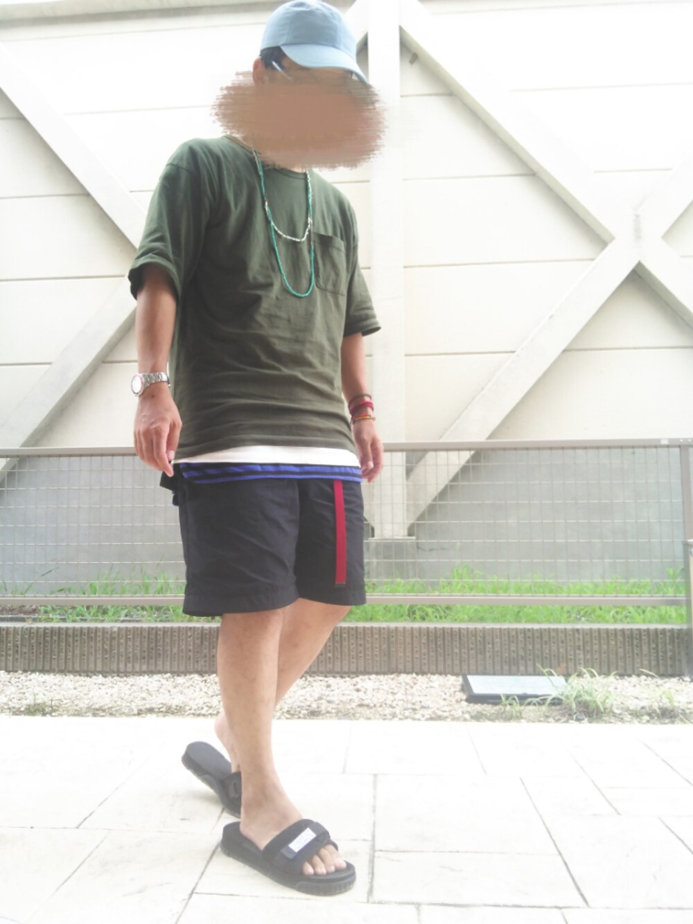 はい。どーも。こんな時間にこんにちわ。 ご覧頂きありがとーございます。 今日も元気にレイヤード。 トップスはビッグTー。 インナーにロング丈ー。 パンツはブラックのナイロンショーツー。 足元はスポーツサンダル。 ボーシはキャップー。 今日はカジュアルレイヤードコーデ。 今日のコーデはこんなんでしょー❗ イイネお気に入りフォローありがとーございます❗ ソレジャマター❗ 気温29℃