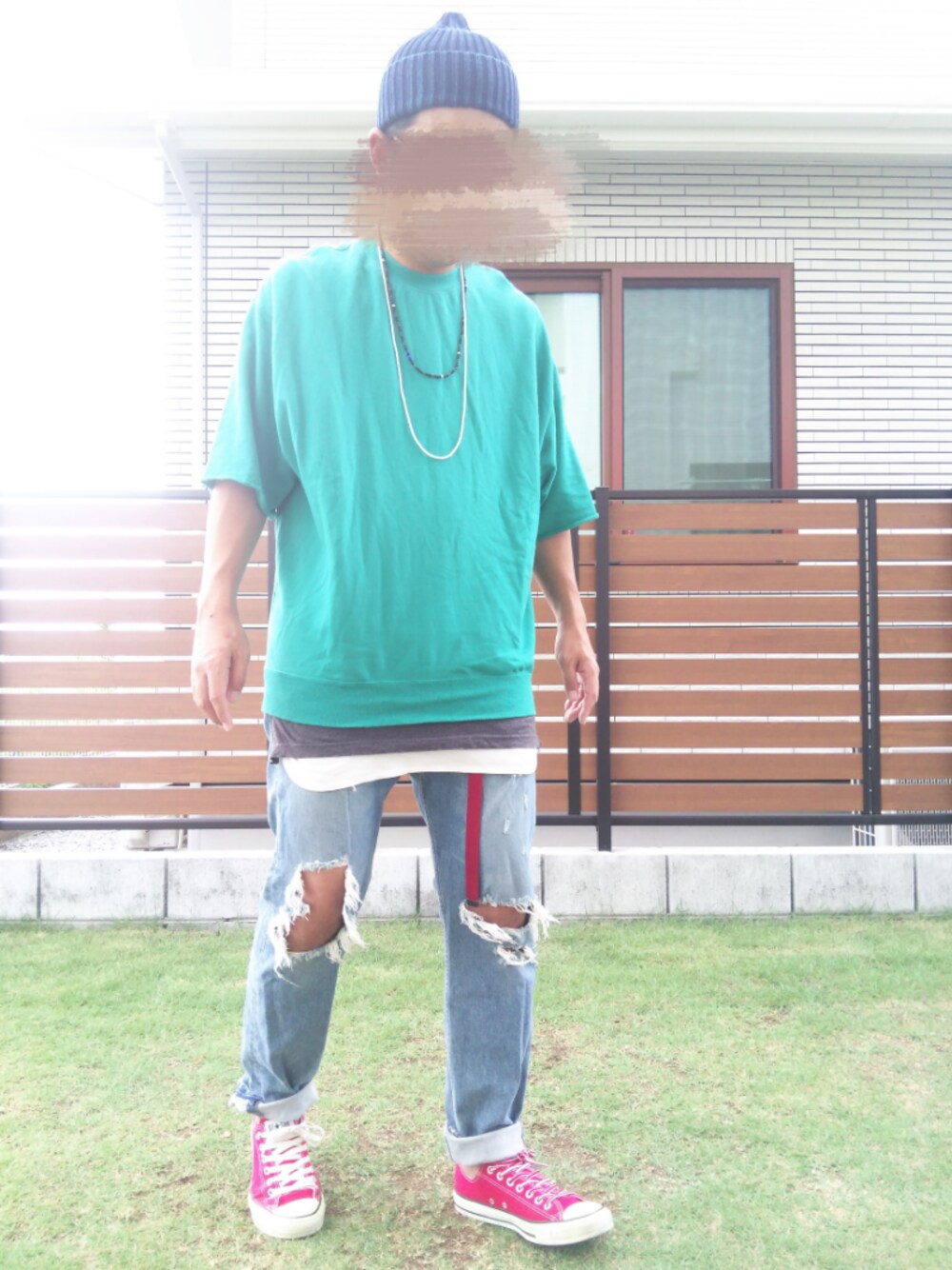 ど。モ。ー。コ。ん。ち。わー。 暑いんだか涼しいんだかよく分からん中ご覧頂きありがとーございます。 今日も元気にレイヤード。 トップスはスウェット〜。 グリーンのビッグシルエット。 インナーにロング丈〜でレイヤード。 パンツはダメージデニムパンツ。 足元はスニーカー👟 もうサンダルも終わりかな…。 ボーシはニット帽〜。 少しずつ秋服にシフトしてこーと思います。 今日のコーデはこんなんでしょー❗ イイネお気に入りフォローありがとーございます❗ そ。れ。ジャ。ま。たー。 気温29℃