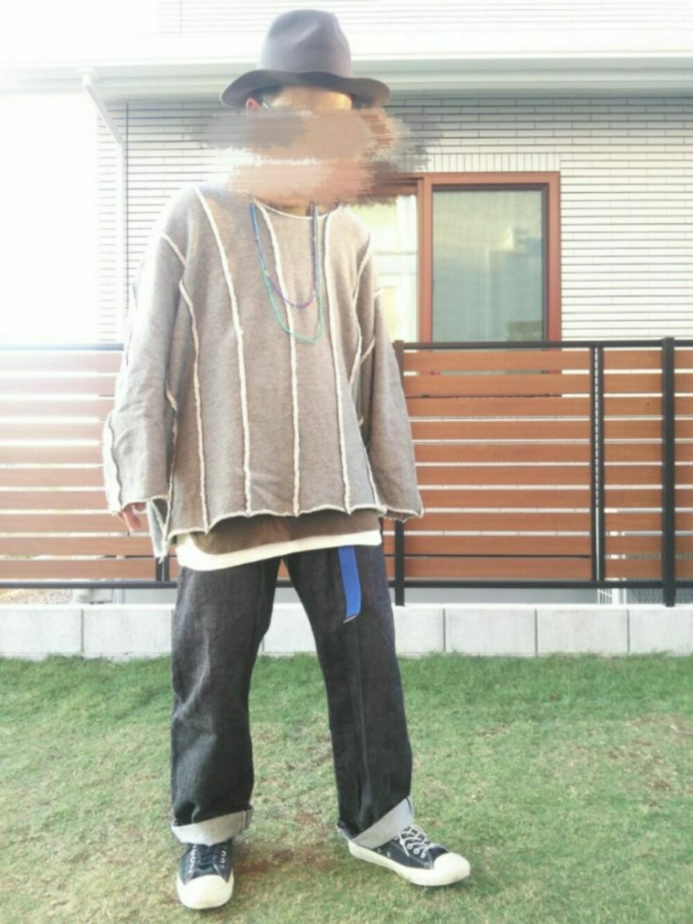 ドモ。コンチワ。 今日もいいお天気な中ご覧頂きありがとーございます。 今日も元気にレイヤード。 トップスはスウェット〜。 グレーのビッグシルエット。 インナーにはロング丈。 パンツは黒のワイドデニム。 足元はスニーカー。 コンバース。 ボーシはツバ広ハット〜。 今日のコーデはコンナンデショ〜。 イイネお気に入りフォローありがとーございます❗ ソレジャマタ〜。 気温22℃
