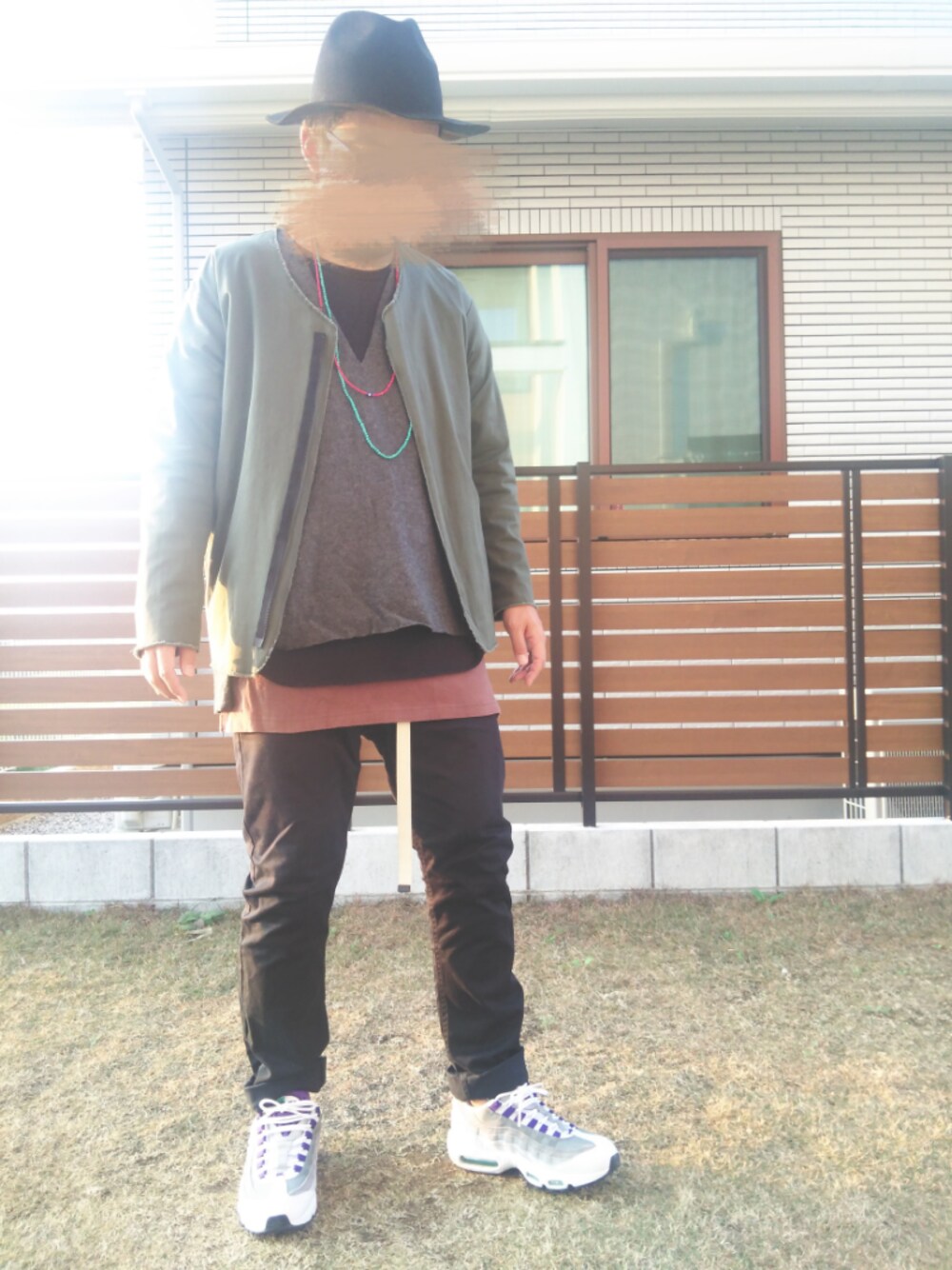 どもこんち。 今日もクリスマスまで1週間になった中ご覧頂きありがとーございます。 いやー今日あったかいですね。 今日も元気にレイヤード。 アウターはノーカラージャケット。 トップスはプルオーバー。 インナーにローング丈。 パンツはスキニーパンツ。 ネイビーの。 足元はエアマックス95 。 パープルの。 ボーシはツバ広ハット〜。 今日のコーデはコンナンデショ〜。 イイネお気に入りフォローありがとーございます〜❗ それじゃあまた❗ 気温20℃