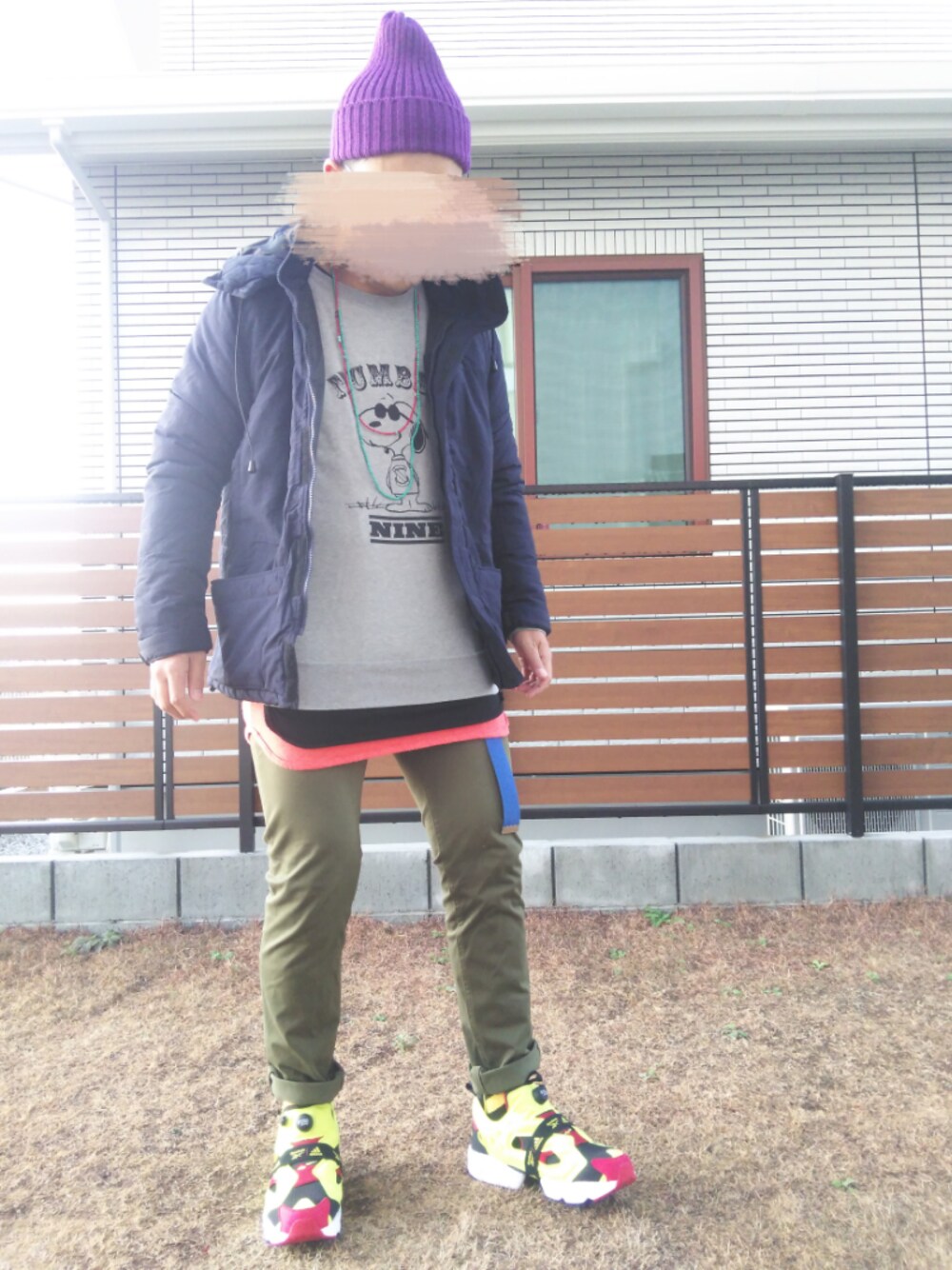 ドモー。こんにちーわー。 雨上がりの中ご覧頂きありがとーございます。 今日もー元気にーレイヤードー。 アウターはまたダウンー。 今しか着れないからね。 ネイビーのやつ。 トップスはスウェットー。 ナンバーナイン×ピーナッツ。 グレーのやつ。 インナーにはロング丈〜。 パンツはースキニー。 カーキのやつ。 足元はーポンプフューリー。 アディダス×リーボックのブースト仕様。 黄色と赤と黒のシトロンのやつ。 ボーシはーニット帽。 ムラサキのやつ。 今日のコーデはコンナンでーしょー。 イイネお気に入りフォローありがとーございます❗ ソレジャマタ〜。 気温12℃