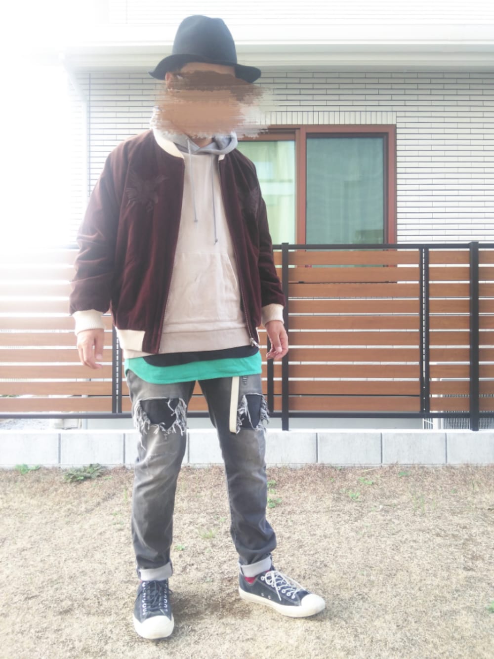 ハイドモ。こんちわー。 3月になって春めいて来た中ご覧頂きありがとーございます。 卒業式シーズンですねー。 今日も元気にレイヤード。 アウターはスカジャン❗ トップスはパーカー。 グレーのやつ。 インナーにロング丈でレイヤード。 パンツはダメージデニムパンツ。 グレーの。 足元はコンバース〜。 ボーシはツバ広ハット。 黒の。 今日のコーデはこんなでし〜。 イイネお気に入りフォローありがとーございます❗ 3月も宜しくお願いします❗ ソレジャマタ〜。 気温15℃