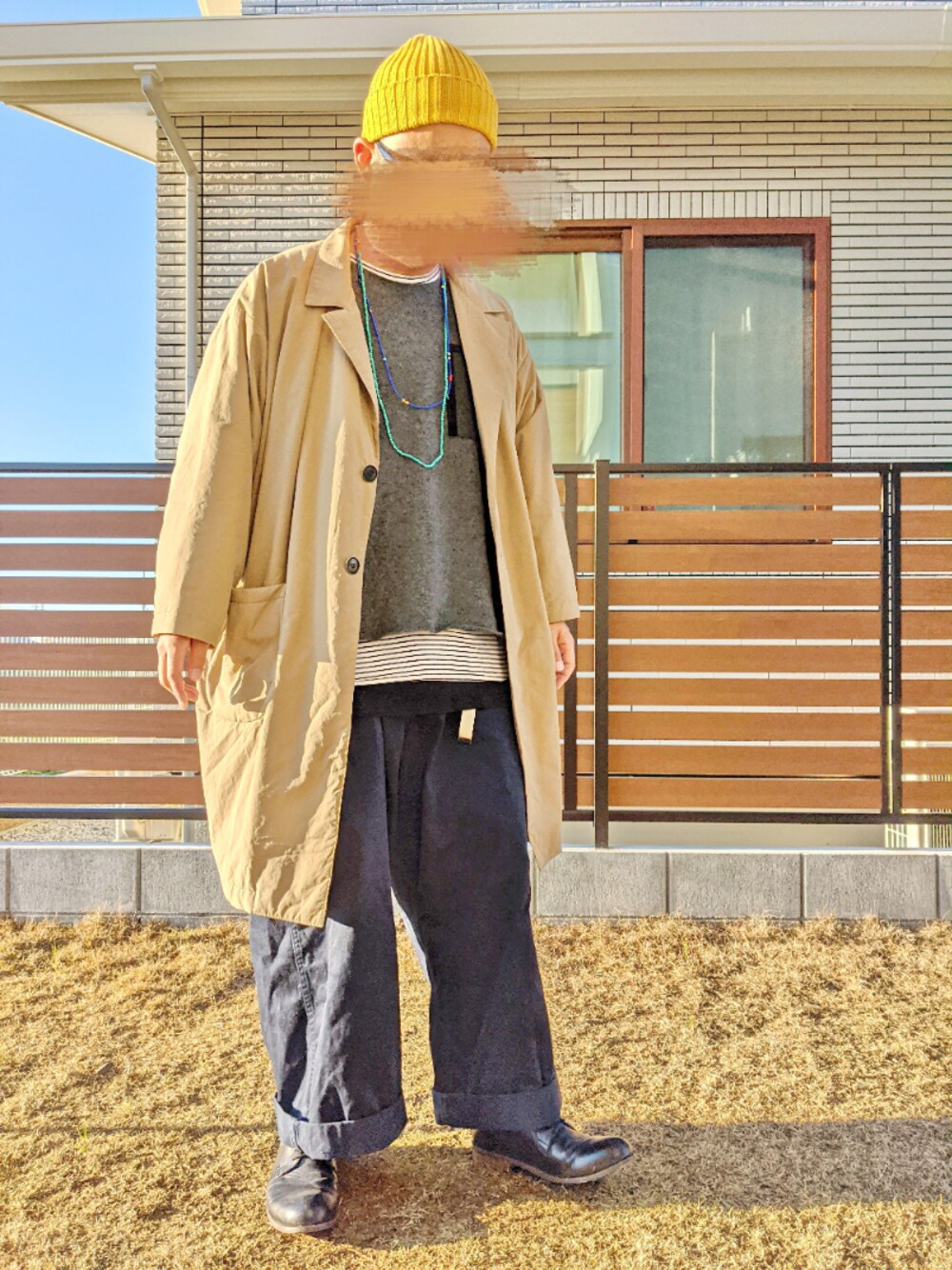 ハイドモー。コンチワ。 今日も花粉が飛び交ってる中ご覧頂きありがとーございます。 鼻がムズムズする‥‥。 今日も元気にレイヤード。 アウターはチェスターコート〜。 ベージュの。 トップスはプルオーバー。 チャコールグレーの。 インナーにロング丈。 パンツはワイドパンツ〜。 ネイビーの。 足元は革靴〜。 黒の。 ボーシはニット帽〜。 カラシ色の。 今日はゆるコーデ。 今日のコーデはコンナンしょー。 イイネお気に入りフォローありがとーございます❗ ソレじゃマタ〜。 気温13℃