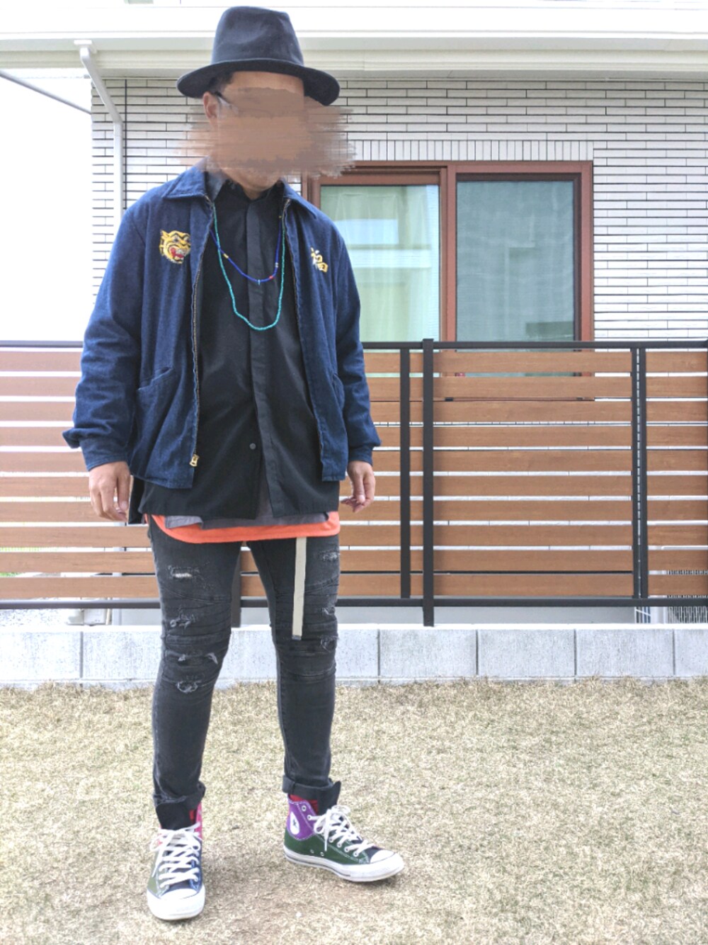 ドモ。コンニチワ。 ご覧頂きありがとーございます。 なんかコロナの影響で今年の春は春らしいこと何もできないね‥‥‥。 もう桜も散っちゃうし🌸 今日も元気にレイヤード。 アウターはベトジャーン。 トップスはビッグシャツ。 黒の。 インナーにロング丈。 パンツはダメージスキニーデニム。 黒の。 足元はスニーカー👟 コンバースのマルチの。 ボーシはツバ広ハット〜。 黒の。 今日のコーデはコンナンでし〜。 イイネお気に入りフォローありがとーございます❗ ソレジャまったねー。 気温16℃