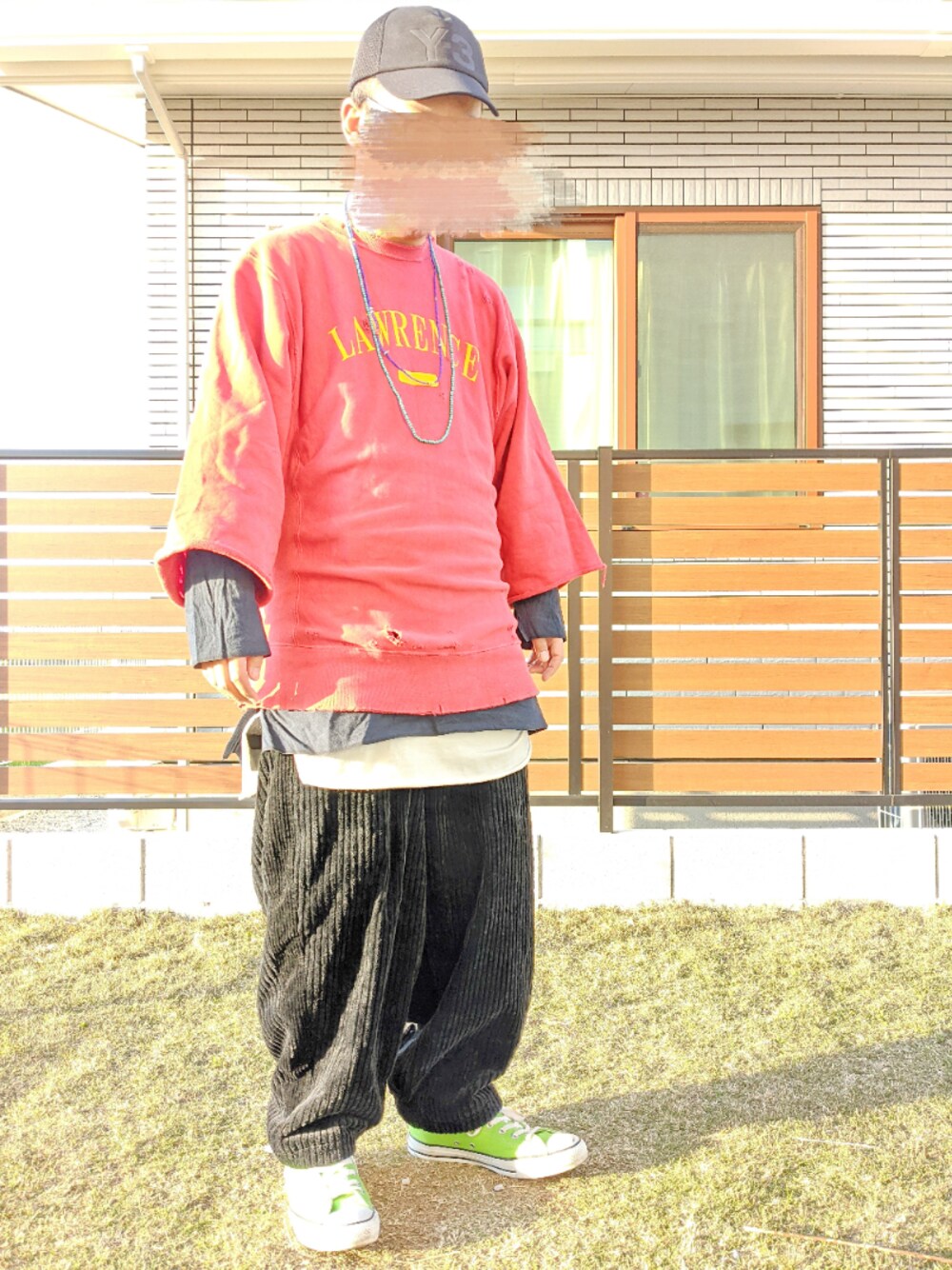ドモー。コンツワ。 アベノマスクに不良品があった中ご覧頂きありがとーございます❗ 未発送の分一旦全部回収だそーな。 そりゃあ届かないわ。 今日も元気にレイヤード。 トップスはスウェット〜。 赤のダメージ加工。 インナーにロング丈。 パンツは超絶ワイドパンツ。 黒のコーデュロイパンツ。 足元はコンバース〜。 グリーンの。 ボーシはキャップ〜! 黒の。 ゆるっとユルユルゆるコーデ。 今日のコーデはコンナンでしょ〜。 イイネお気に入りフォローありがとーございます❗ ソレジャあまーたーねー❗ 気温20℃