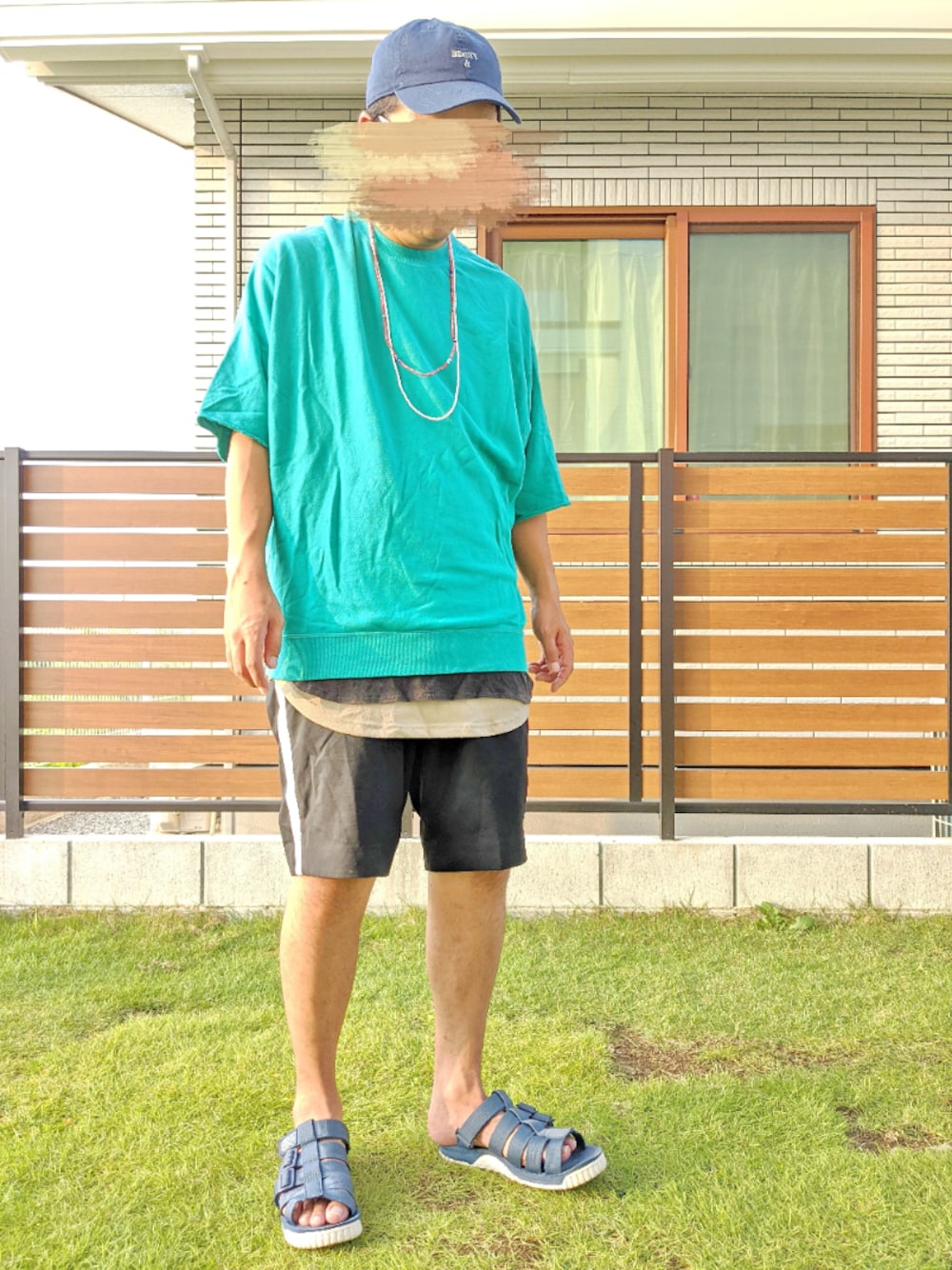 ハイー。ドモコンチワ。 お盆休みが始まった中ご覧頂きありがとーございます☀ でもコロナでどこにも行けない‥‥‥。 今日も元気にレイヤード〜。 トップスはスウェット〜。 エメラルドグリーンのビッグシルエット。 インナーにロング丈〜。 パンツはハーフパンツ〜。 ブラックの。 足元はスポサン〜。 ブルーの。 ボーシはキャップ〜。 ネイビーの。 真夏のカジュアルコーデ。 今日のコーデはコンナンでしょ〜☀ イイネお気に入りフォローありがとーございます☀ それじゃあまったね❗ 気温32℃