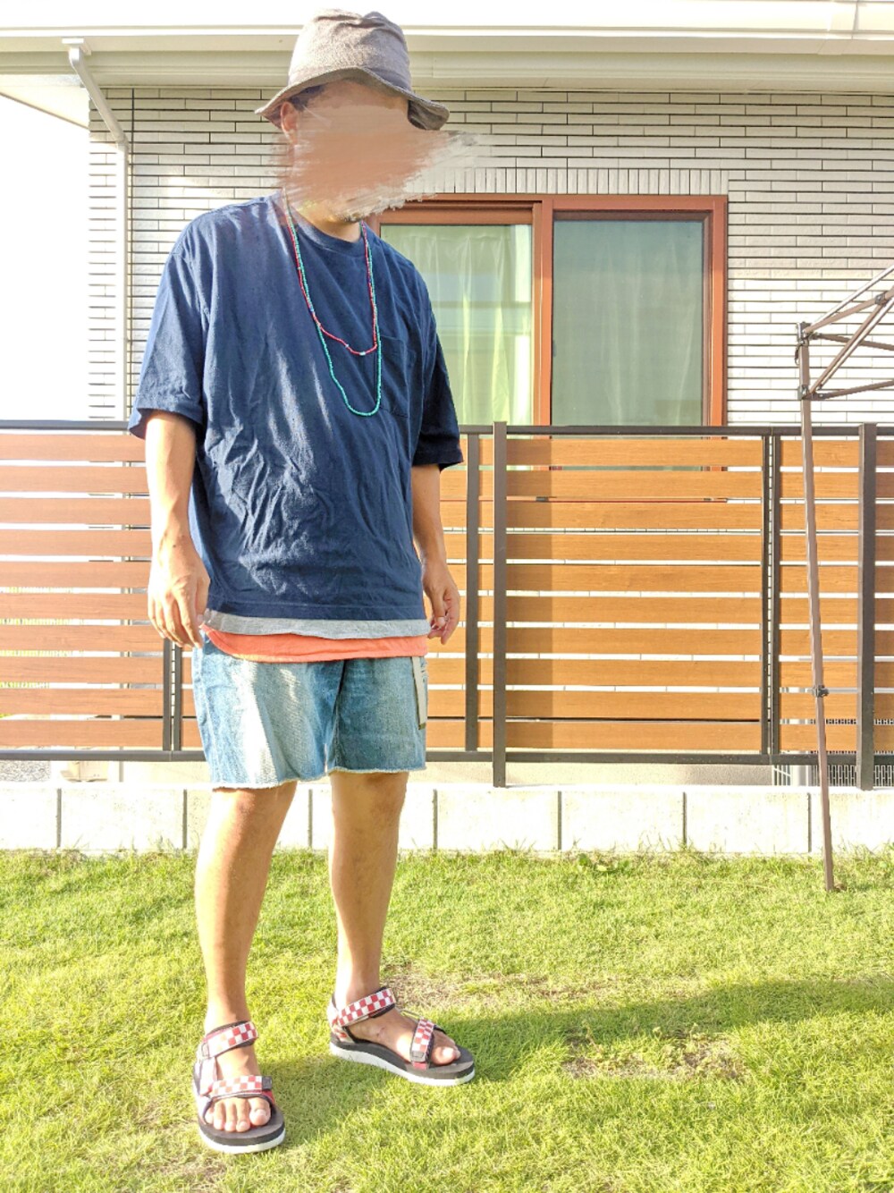 ドモコンニチワ〜。 お盆休みも終盤に差し掛かってる中ご覧頂きありがとーございます☀ 朝からあちーね…。 梅雨明けしてからまだ1回も雨降ってない☀ 今日も元気にレイヤード〜。 トップスはビッグT。 ネイビーの。 インナーにロング丈〜。 パンツはデニムのハーフパンツ〜。 足元はスポサン〜。 赤のチェックの。 ボーシは麦わら帽子〜。 グレーの。 ビッグシルエットでゆるコーデ。 今日のコーデはこんなでしょー❗ イイネお気に入りフォローありがとーございます❗ ソレジャあまった❗ 気温36℃