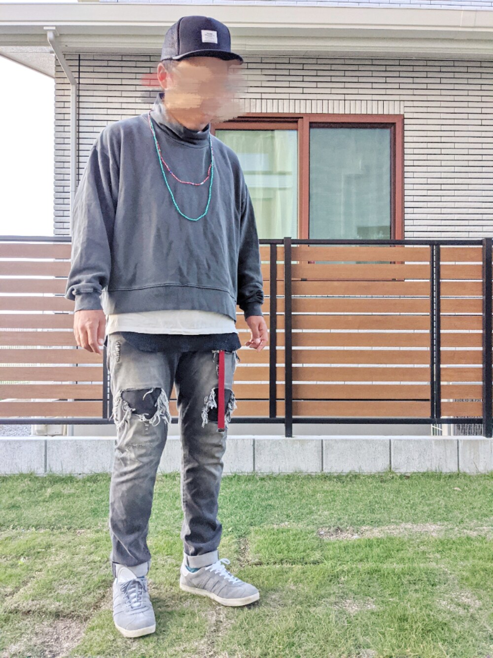 はいードモコンチワ。 今日で10月も終わりな中ご覧頂きありがとーございます❗ 今年もあと2ヶ月で終わりですねえ‥‥。 しかも今日ハロウィン🎃 さすがに今年の渋谷は自粛ムードでしょう‥‥。 今日も元気にレイヤード〜。 トップスはスウェット〜。 モックネックのブラックの。 インナーにロング丈〜。 パンツはダメージデニムパンツ。 ブラックの。 足元はスニーカー👟 グレーの。 ボーシはキャップ〜。 ブラックの。 今日はモノトーンコーデ。 今日のコーデはコンナンデシょ〜❗ イイネお気に入りフォローありがとーございます❗ ソレジャマタ❗ 気温20℃