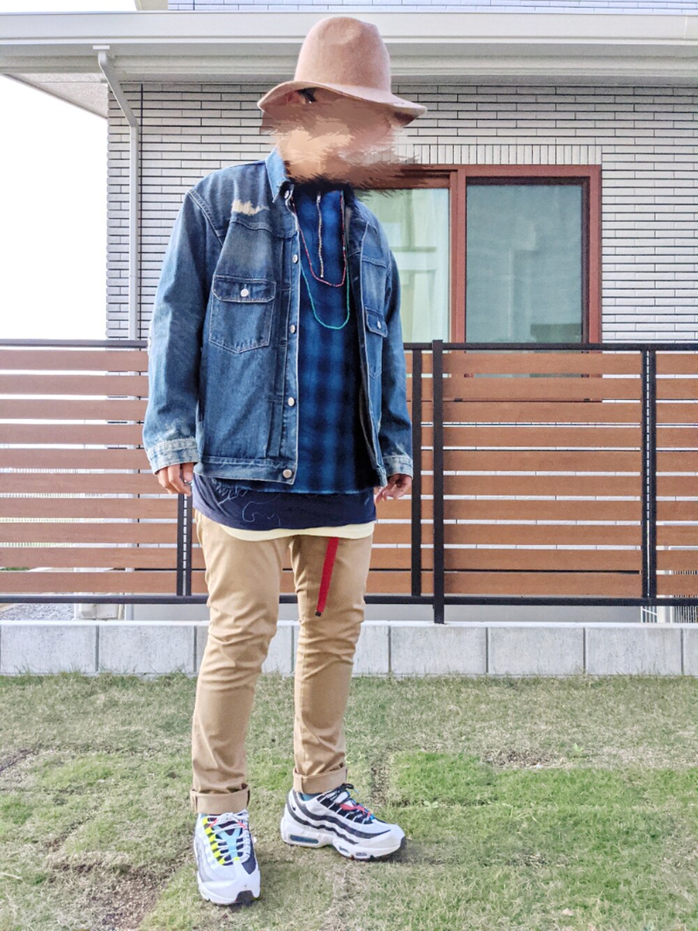 ドモコンチワ。 だんだん冬らしい季節になってきた中 ご覧頂きありがとーございます❗ 今日も元気にレイヤード〜。 アウターはデニムジャケット。 トップスはプルオーバー。 ブルーのチェックの。 インナーにロング丈〜。 パンツはスキニーチノ。 ベージュの。 足元はエアマックス〜。 ボーシはツバ広ハット〜。 ブラウンの。 今日のコーデはコンナンデショ〜。 イイネお気に入りフォローありがとうございます❗ ソレジャマタ❗ 気温17℃