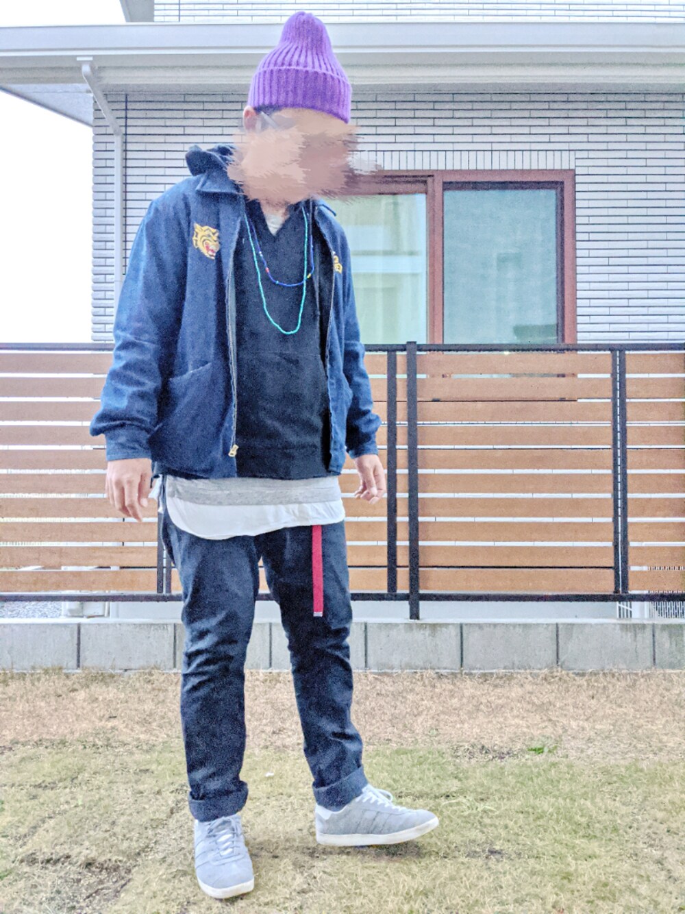 ハイドモーコンチワ。 今日からGOtoトラベル廃止こ中ご覧頂きありがとうございます❗ 僕も近場予約してたんですけどキャンセルしましたね。 今日も元気にレイヤード〜。 アウターはベトジャーン。 デニム生地の。 トップスはパーカー。 ブラックの。 インナーにロング丈〜。 パンツはスキニー。 ネイビーの。 足もとはスニーカー。 グレーの。 ボーシはニット帽〜。 パープルの。 今日のコーデはコンナンデショ〜。 イイネお気に入りフォローありがとうございます❗ それじゃまーたー。 気温14℃