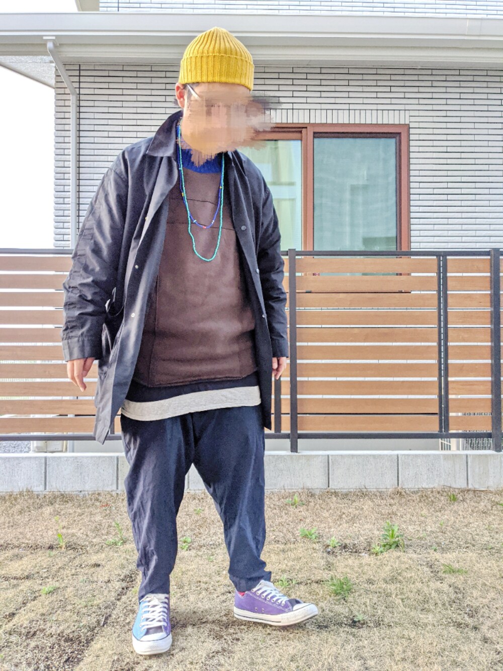 ハイドモコンニチワ。 あったか陽気な中ご覧頂きありがとー御座います。 20℃まで上がるそーな。 今日も元気にレイヤード〜。 アウターはコーチジャケット。 ブラックの。 トップスはスウェット〜。 ブラウンの。 インナーにロング丈〜 パンツはワイドパンツ〜。 ネイビーの。 足もとはスニーカー👟 バイカラーの。 ボーシはニット帽〜。 マスタードの。 今日もお気に入りブランドのゆるコーデ。 今日のコーデはコンナンデショ〜。 イイネお気に入りフォローありがとうございます❗ それじゃ❗またぁー。 気温20℃