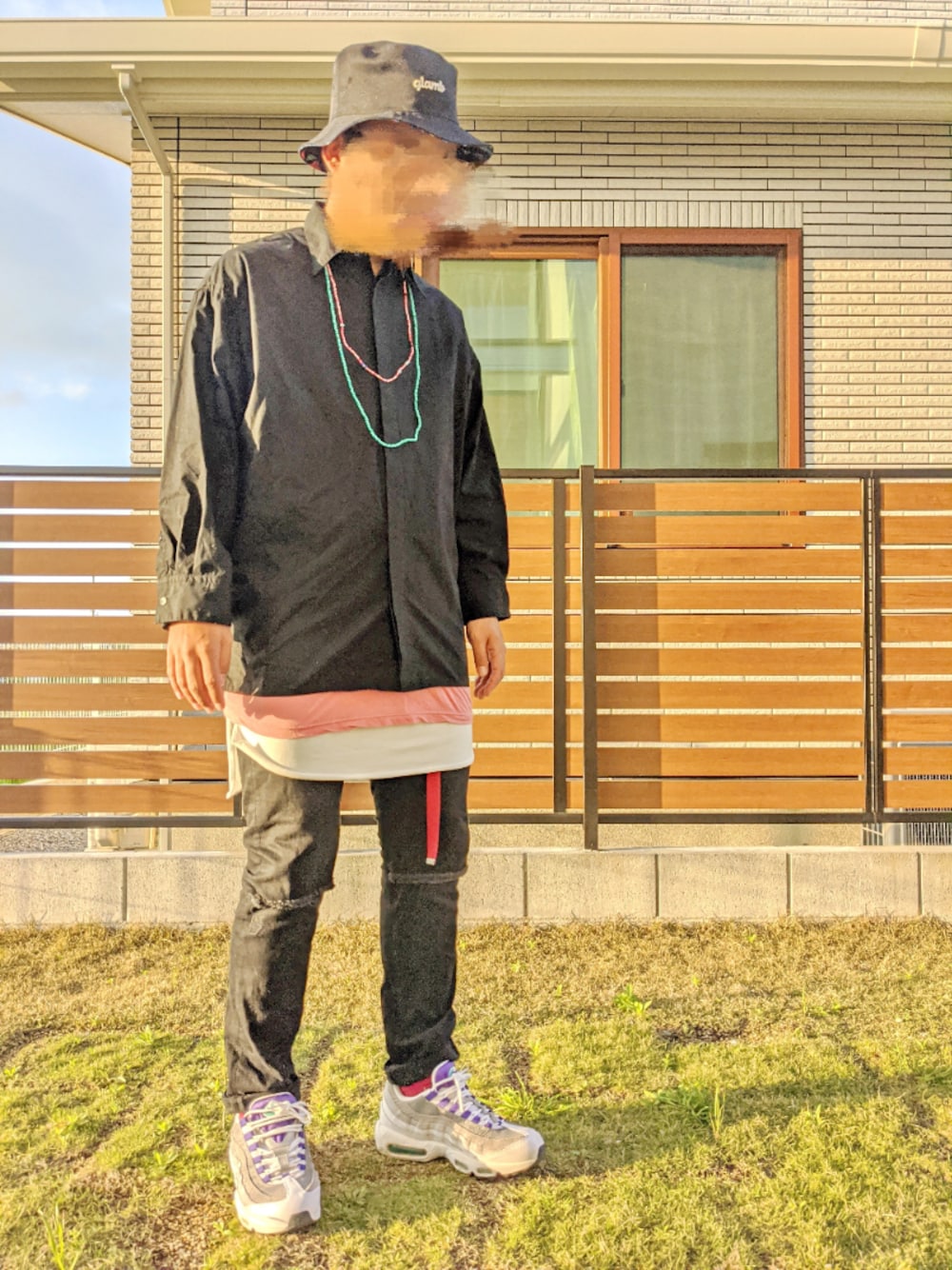 ハイドモコンニチワ〜。 桜がもう散りかけてる中ご覧頂きありがとうございます❗ 新学期デスネー。 今日も元気にレイヤード〜。 トップスはビッグシャツ〜。 ブラックの。 インナーにロング丈〜。 パンツはスキニー。 ブラックの。 足もとはスニーカー。 エアマックスのパープル。 ボーシはバケットハット〜。 ブラックの。 オールブラックコーデ。 今日のコーデはコンナンデショ〜。 イイネお気に入りフォローありがとうございます❗ 今月も宜しくおねがいします❗ それじゃあーまたー。 気温20℃