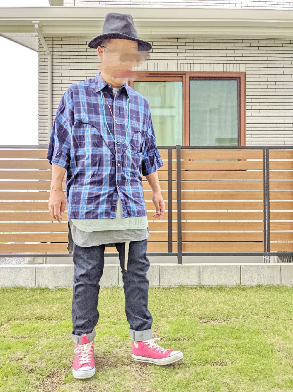 ハイドモコンニチワ。 もう5月も終わりな中ご覧頂きありがとうございます❗ 今日も元気にレイヤード〜。 トップスはビッグシャツ❗ チェックの。 インナーにロング丈〜。 パンツはデニム〜❗ 足もとはスニーカー👟 ボーシはツバヒロハット〜❗ ブラックの。 チェックシャツを使ったレイヤードコーデ❗ 今日のコーデはコンナンデショ〜。 イイネお気に入りフォローありがとうございます❗ それじゃあーまたー❗ 気温28℃