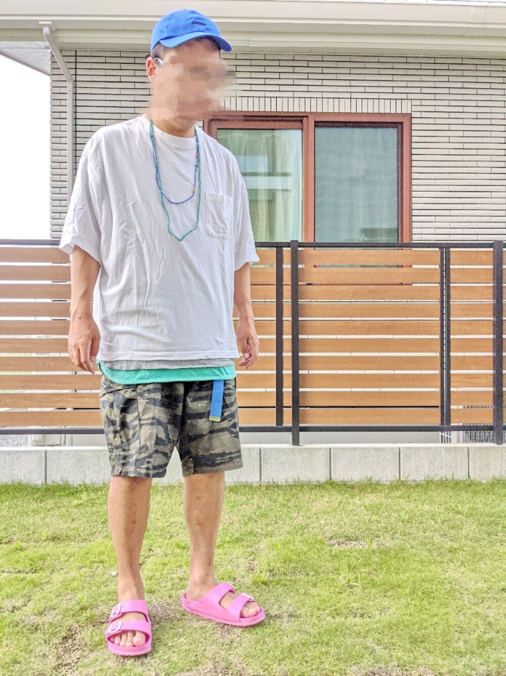 ハイドモコンニチワ〜。 6月も終わりな中ご覧頂きありがとうございます❗ 今日も元気にレイヤード〜。 トップスはビッグTシャツ👕 白の。 インナーにロング丈〜。 パンツはハーフパンツ。 カモフラの。 足もとはサンダル〜。 ピンクの。 ボーシはキャップ〜。 ブルーの。 今日のコーデはコンナンデショ〜。 イイネお気に入りフォローありがとうございます❗ それじゃあーまたー❗ 気温28℃