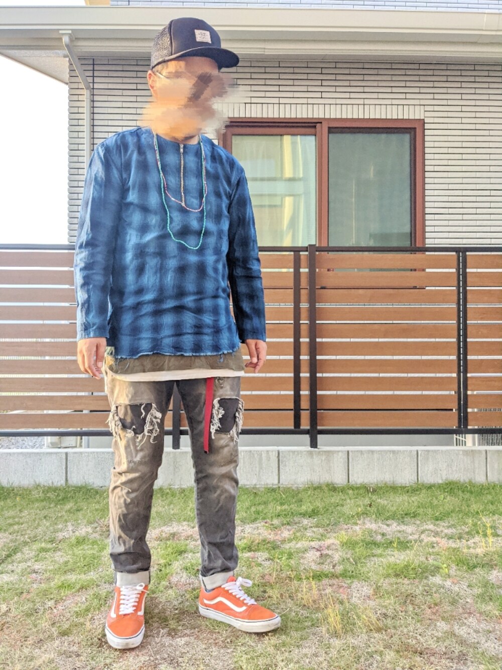 ハイドモコンニチワ〜。 コロナ感染がだいぶ落ち着いてきた中ご覧頂きありがとうございます❗ それにしても急に寒くなった‥‥‥。 今日も元気にレイヤード〜。 トップスはプールオーバー。 ブルーのチェックの。 インナーにロング丈〜。 パンツはダメージデニムパンツ〜。 ブラックの。 足もとはスニーカー👟 オレンジの。 ボーシはキャップ〜。 ブラックの。 今日のコーデはコンナンデショ〜。 イイネお気に入りフォローありがとうございます❗ それじゃあーまたー❗ 気温20℃