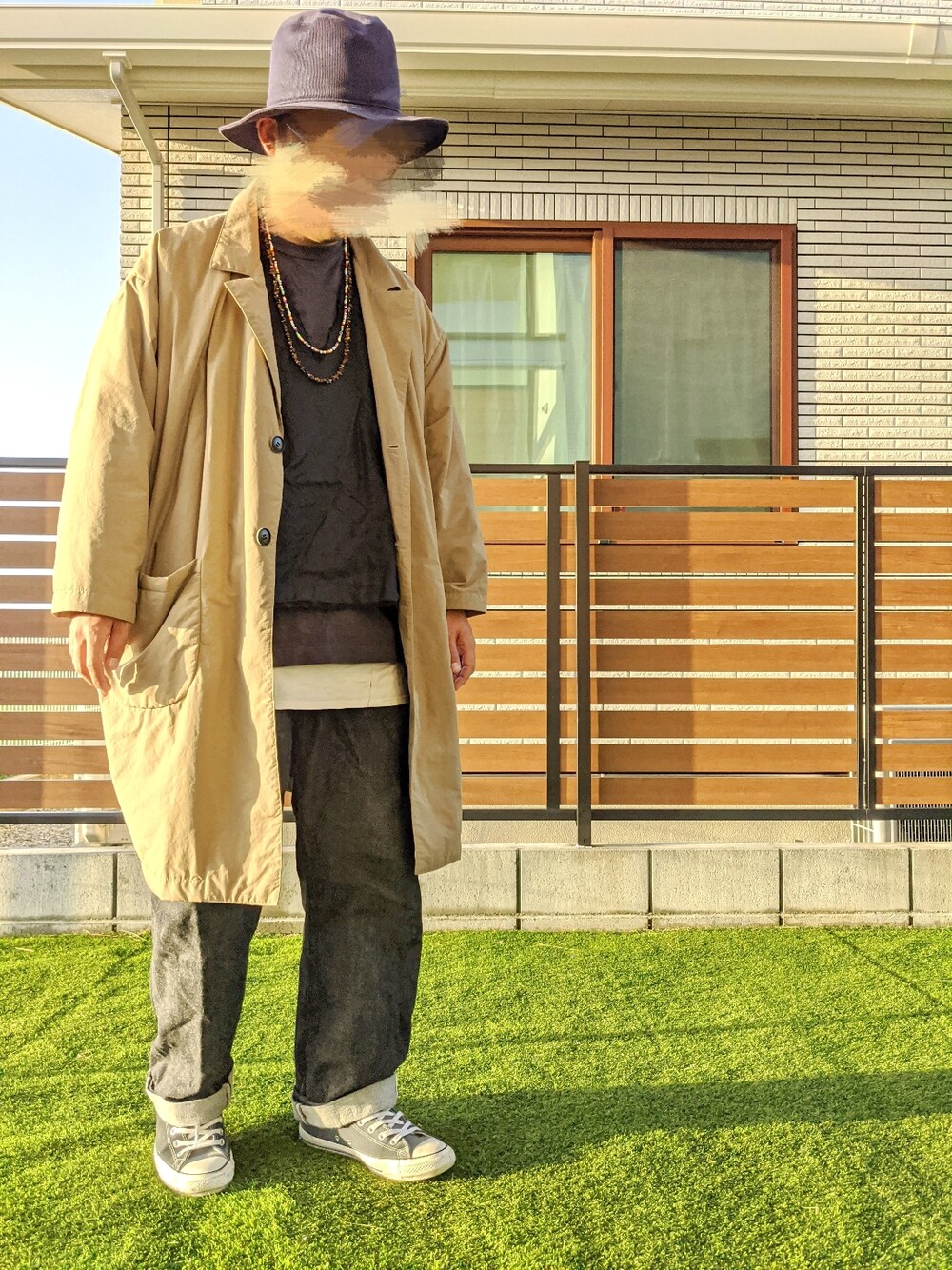 ドモー。コンチワ。 もうそろそろアウターもいらない季節になってきた中ご覧頂きありがとうございます❗ 今日も元気にレイヤード〜。 アウターはステンカラーコート。 ベージュの。 トップスはプルオーバー〜。 ブラックの。 インナーにロング丈〜。 パンツはデニム。 ブラックの。 足元はスニーカー。 ボーシはバケットハット〜。 今日のコーデはコンナンデショ〜。 イイネお気に入りフォローありがとうございます❗ それじゃあーまたー❗ 気温21℃