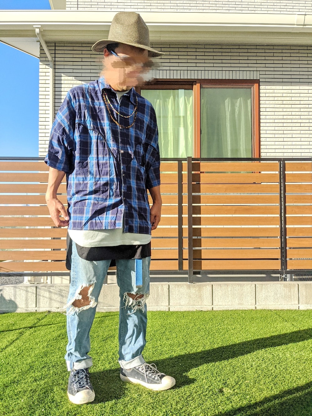 ドモーコンチワー。 梅雨入りした中ご覧頂きありがとうございます❗ 今日も元気にレイヤード〜。 トップスはビッグシャツ〜。 チェックの。 インナーにロング丈〜。 パンツはダメージデニム。 足もとはスニーカー。 ボーシはストローハット〜。 今日のコーデはコンナンデショ〜。 イイネお気に入りフォローありがとうございます。 それじゃあーまたー❗ 気温26℃