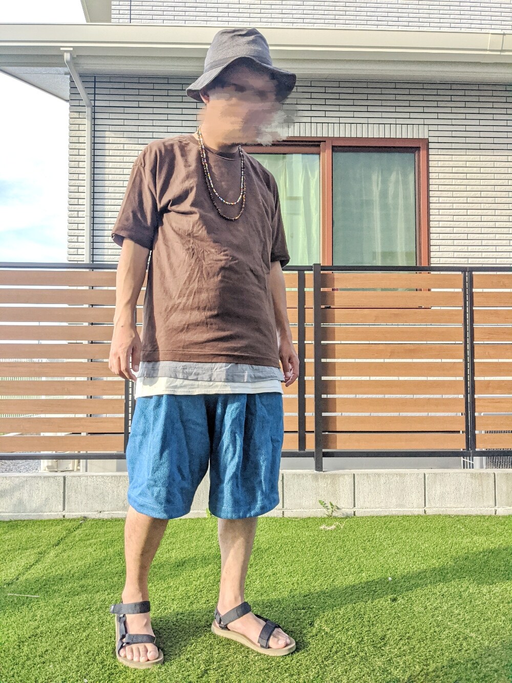 ドモーコンチワ。 梅雨開けたんじゃないかってくらい暑い中ご覧頂きありがとうございます❗☀ 今日も元気にレイヤード〜。 トップスはビッグT。 ブラウンの。 インナーにロング丈〜。 パンツはハーフパンツ。 ブルーの。 足もとはサンダル〜。 ボーシはツバヒロハット〜。 もう夏コーデ。 今日のコーデはコンナンデショ〜。 イイネお気に入りフォローありがとうございます❗ それじゃあーまたー❗ 気温29℃