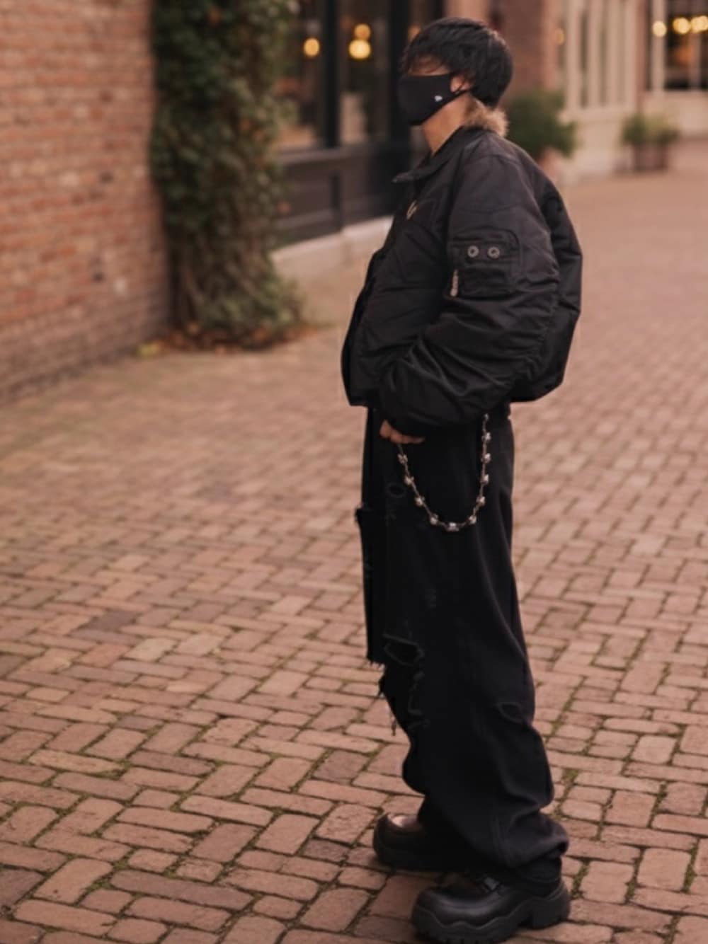 サグクラブのMA1にズラみたいなビーニーでブラックコーデ🙄個人的にズラビーニーめっちゃ気に入ってます🤣