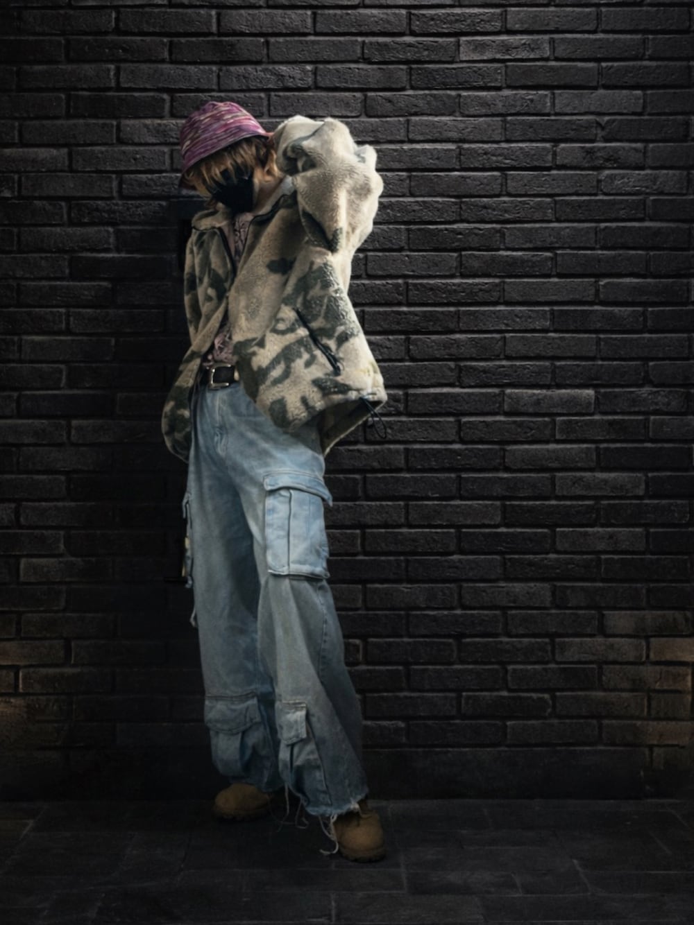 カモ柄のボアジャケットにパープル系、ピンク水色、イエローブーツと色々な色を使ってコーデ🙄w