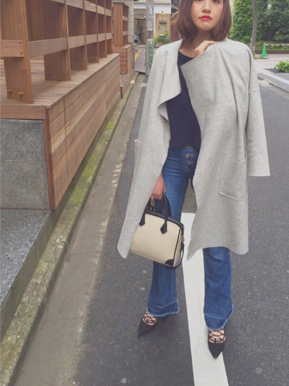 mica hanedaのボストンバッグ「コンビミニボストン『BAILA 6月号掲載』」を使ったコーディネート