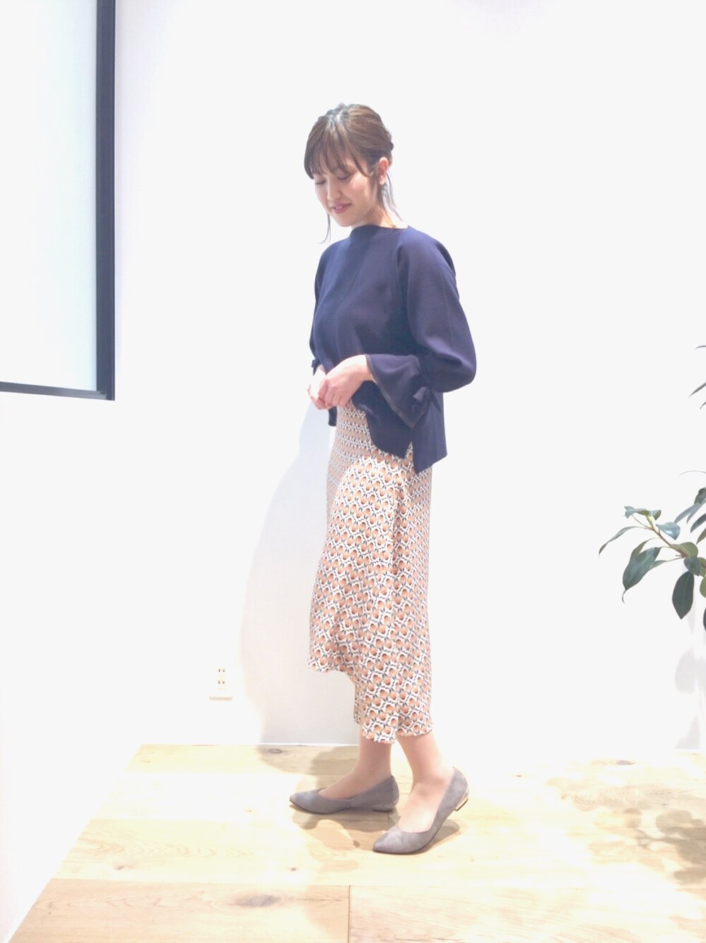 mica hanedaのニット/セーター「シルクコットン袖リボンプルオーバー【GINGER 2017年04月号 P.49掲載】」を使ったコーディネート