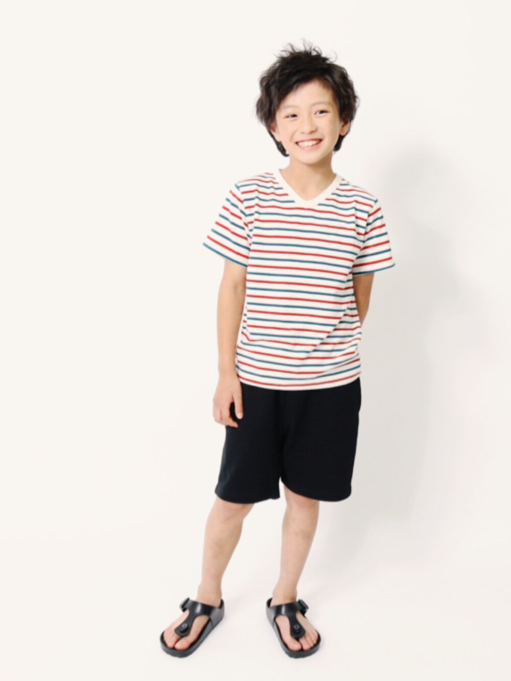 devirockのTシャツ/カットソー「先染めボーダーVネック半袖Tシャツ カットソー」を使ったコーディネート