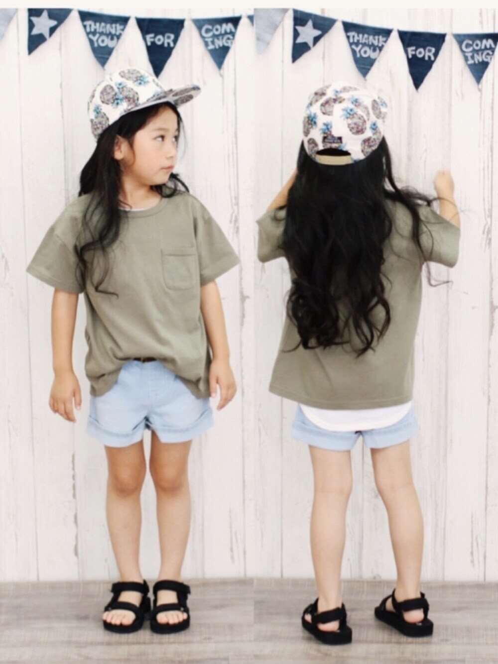 こんばんは🙌🏻 ビッグTシャツから 後ろだけロング丈ちら見せ☻♡ 後ろ姿が最強にかわいいです、、♬ 総柄パイナップルのキャップで 夏らしさもあっぷ🍍