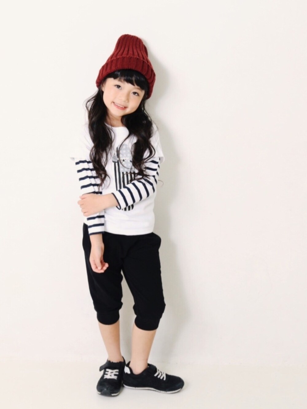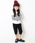 devirockのTシャツ/カットソー「クルーネックパネルボーダー長袖Tシャツ ロンT」を使ったコーディネート
