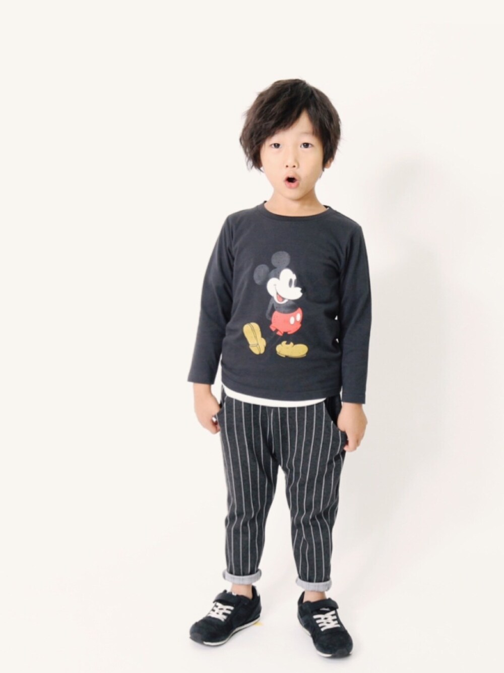 こんばんは🙌🏻 ミッキーTシャツ✌︎ ことしはロンTが新登場です☻ 子どもっぽすぎない、ベーシックなプリント☝︎