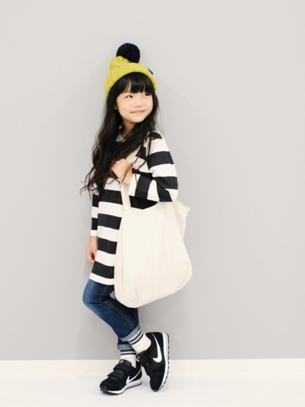 こんばんは🙌🏻 モノトーンコーデに 差し色で黄色のニット帽☝︎☻