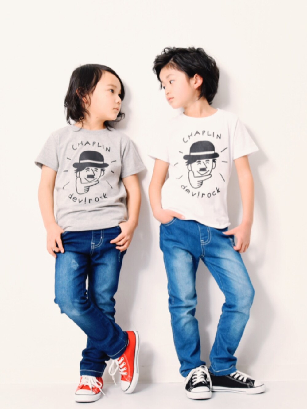 こんばんは🙌🏻 わかるさんコラボTシャツ チャップリン柄🎩 シンプルにデニム×コンバースで おともだちとリンクもめちゃめちゃかわいいです♡